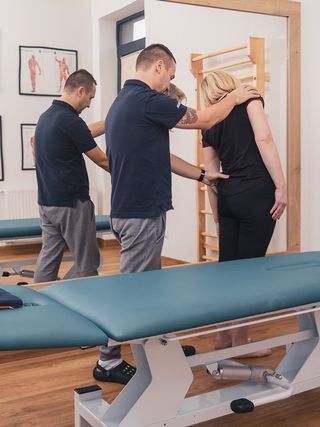 Fizjoterapeuta ocenia możliwości motoryczne pacjenta i w zależności od stopnia jego sprawności, dobiera odpowiednie ćwiczenia do wykonywania w domu. Jest to bardzo ważny etap, a jego skuteczność zależy od stopnia zaangażowania pacjenta. Należy nadmienić, iż od pierwszej wizyty pacjent rozpoczyna samodzielne wykonywanie w domu odpowiednio dobranych ćwiczeń. Do osiągnięcia celów leczenia niezbędnych jest na ogół od 3 do 7 terapii. Trójetapowy model terapii gwarantuje, że Pacjent będzie mógł cieszyć się pełnią sił i sprawnością jak najdłużej. Kompleksowe podejście do problemu przekłada się na jego trwałe rozwiązanie.